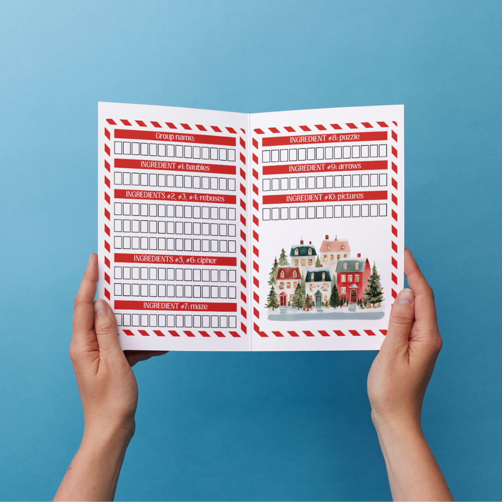 Zamień zwykłą lekcję w świąteczną misję pełną wyzwań i współpracy! W Christmas Escape Room czeka na nich pełna zagadek, łamigłówek i ukrytych wskazówek historia, w której muszą pomóc Świętemu Mikołajowi odzyskać skradziony przepis (odnaleźć 10 brakujących składników). To idealna aktywność na ostatnie lekcje przed świętami – angażująca, emocjonująca i pełna zimowego klimatu.