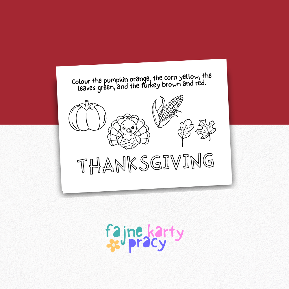 To idealne ćwiczenie dla przedszkolaków i dzieci z wczesnych klas szkoły podstawowej, które można wykorzystać jako cichą aktywność, wprowadzenie do tematu lub element większej lekcji o Thanksgiving.